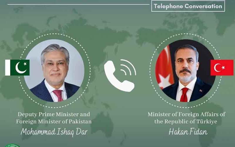 نائب وزیراعظم و وزیر خارجہ اسحاق ڈار اور ترکیہ کے وزیر خارجہ ہاکان فیدان کے درمیان ٹیلیفونک رابطہ ہوا جس میں پاکستان اور افغانستان کے درمیان حالیہ صورتحال پر تفصیلی تبادلہ خیال کیا گیا۔