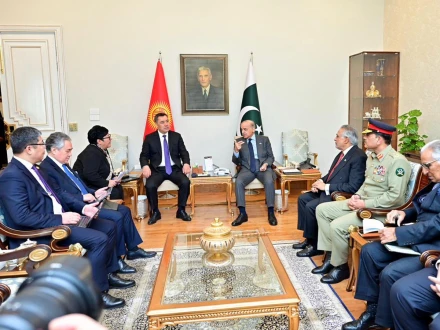 وزیراعظم محمد شہباز شریف اور کرغزستان کے صدر صادر ژاپاروف کی وفود کی سطح پر ملاقات ہوئی۔ دو طرفہ مذاکرات میں وزیراعظم کی معاونت ڈپٹی وزیراعظم و وزیر خارجہ محمد اسحاق ڈار، فیلڈ مارشل سید عاصم منیر چیف آف آرمی اسٹاف، سمیت دیگر اہم وفاقی وزراء اور سینئر سرکاری حکام نے شرکت کی۔