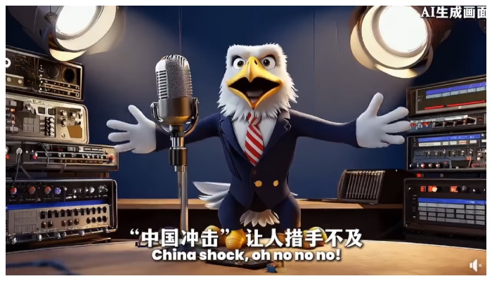 ویڈیو میں چین کی معاشی اور تکنیکی ترقی کو ‘خطرہ’ قرار دینے والے مغربی بیانیے کا مذاق اڑایا گیا ہے۔