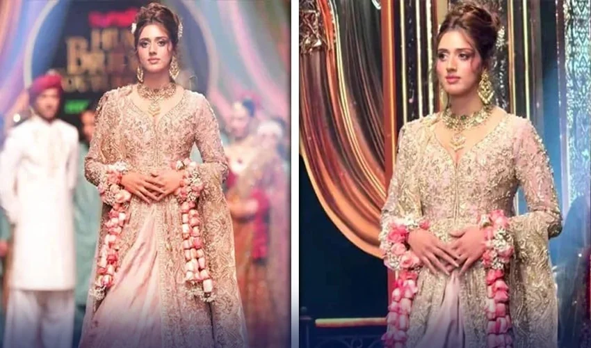 معروف ٹک ٹاک اسٹار جنت مرزا کو برائیڈل کاؤچرویک میں ڈیزائنر ایچ ایس وائے کے لیے ریمپ واک کرنے پرسوشل میڈیا صارفین کی جانب سےشدید تنقیدکاسامنا ہے،جنت مرزا کی واک کو صارفین نے’غیر پیشہ ورانہ‘ قراردیتے ہوئے اسے’سلیپ واک‘ اور’ممی واک‘ جیسے القابات دیے۔