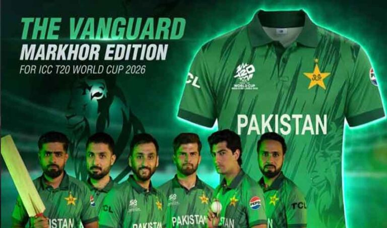 پاکستان کی ورلڈ کپ جرسی کو”مارخور ایڈیشن”کا نام دیا گیا، جرسی پر پاکستان کا قومی جانور مارخور بھی نمایاں ہے۔ کٹ رونمائی میں بابراعظم، شاہین آفریدی، سلمان آغا، نسیم شاہ اور فہیم اشرف نے شرکت کی۔