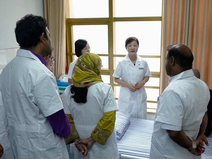 اس اسپتال کا ایک وارڈ آ کو پنکچر، توئینا اور بحالی صحت کا مرکز ہے، ڈاکٹر لو بیدان ایک مریض کی بحالی کے لیے اس کے آکو پوائنٹ میں باریک دھاتی سوئی چبھو رہی ہیں۔ 6 پاکستانی تربیت حاصل کرنے والے افراد نے اس علاج کے مکمل عمل کا مشاہدہ کیا۔