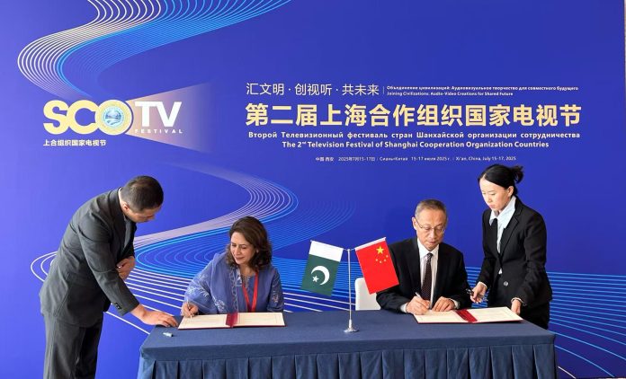 شیان : پاکستان اور چین کے درمیان سمعی و بصری شعبوں میں تعاون کے فروغ کے لیے ایک اہم معاہدہ طے پایا ہے۔ حکومت پاکستان کی طرف سے وفاقی سیکرٹری اطلاعات و نشریات عنبرین جان اور چین کی جانب سے وائس منسٹر اور نیشنل ریڈیو اینڈ ٹیلی ویژن ایڈمنسٹریشن (این آر ٹی اے) کے ’’پارٹی گروپ‘‘ کے رکن ڈونگ شن نے اس معاہدے پر دستخط کیے جس کا مقصد دونوں ممالک کے درمیان نشریات اور سمعی و بصری شعبوں میں تعاون کو فروغ دینا ہے۔