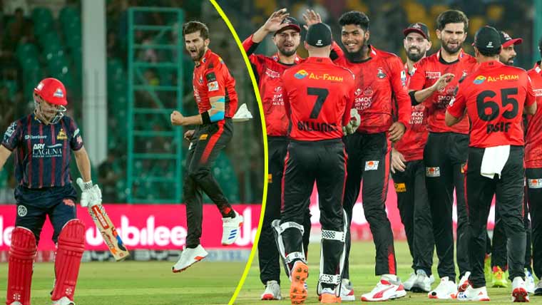 لاہور قلندرز کی جانب سے اوپنر بلے باز فخر زمان 76 اور ڈیرل مچل 75 رنز کیساتھ نمایاں رہے، محمد نعیم 7، عبداللہ شفیق 6، سیم بلنگز 19 اور رشاد حسین 2 رنز بناکر پویلین لوٹ گئے جبکہ سکندر رضا 10 رنز کیساتھ ناٹ آؤٹ رہے۔