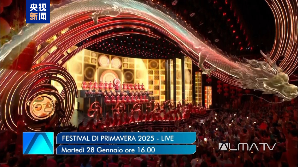 مقامی وقت کے مطابق 22 جنوری کو اٹلی میں الما ٹی وی نے چائنا میڈیا گروپ کے 2025 اسپرنگ فیسٹیول گالا کی پروموشنل ویڈیو نشر کی۔ یہ مسلسل چوتھا سال ہے جب الما ٹی وی نے سی ایم جی کے اسپرنگ فیسٹیول گالا کی خصوصی براہ راست نشریات کا اہتمام کیا ہے۔ اسپرنگ فیسٹیول کے دوران الما ٹی وی ، ڈونا ٹی وی ، لازیو ٹی وی اور اٹلی چینل 7 سمیت اٹلی کے 10 سے زیادہ قومی ٹی وی چینلز 25 ملین گھرانوں کواسپرنگ فیسٹیول گالا کا اطالوی مختصر ورژن نشر کریں گے۔